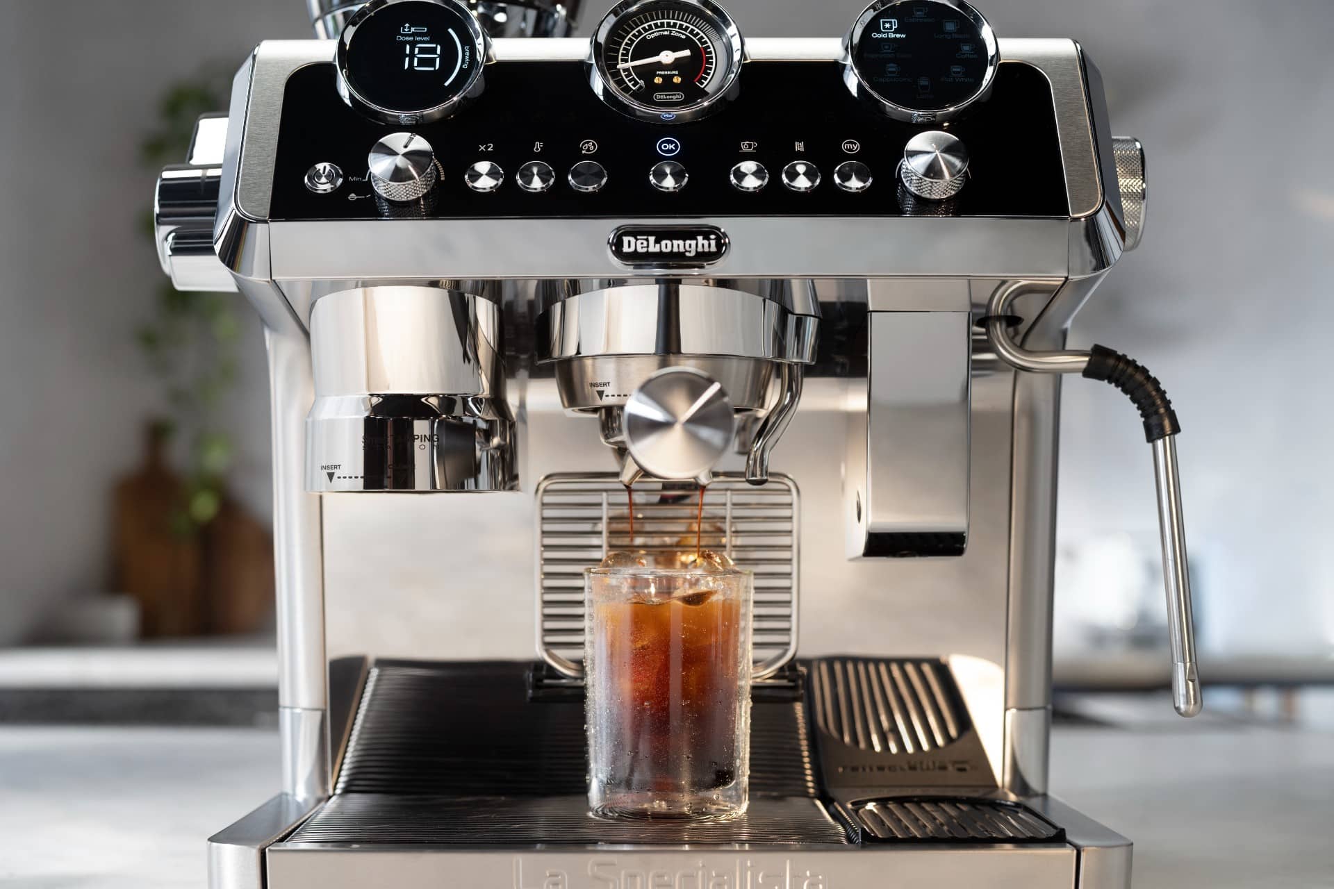 Серия La Specialista — это ответ De’Longhi на линейку Barista от Breville/Sage. Концепция: полуавтоматическая рожковая машина, куда уже встроена кофемолка, манометр и набор аксессуаров. Но если австралийцы из Breville делают ставку на количество степеней помола и умное дозирование, то итальянцы пошли шире — добавили холодный кофе, автоматический темпинг и систему автовзбивания молока.