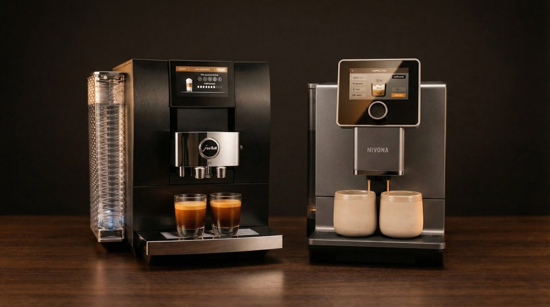 JURA берёт своё настоящей холодной экстракцией (вода минует термоблок), мгновенным переключением помола через P.R.G., регулировкой температуры молока и единым диспенсером. Материалы и сборка — объективно на ступень выше. Уровень шума ниже.