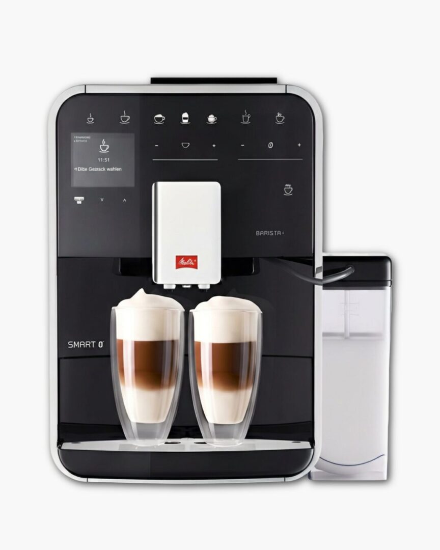 Если рассматривать базовое устройство внутри этой линейки, автоматическая кофемашина Melitta Barista T Smart F 830-102 Black в строгом черном цвете станет отличным стартом. В отличие от старших версий, эта зерновая кофемашина предлагает ручной выбор зерна: перед приготовлением нужно самостоятельно переключить рычаг двухкамерного бункера. При этом модель Melitta Barista T Smart F 830-102 Black умеет готовить 18 рецептов и может делать два молочных напитка одновременно, что большая редкость для базовых комплектаций. Вся серия Barista Smart славится тихой кофемолкой и отличным раскрытием светлой обжарки, поэтому данный аппарат станет надежным выбором для любителей вкусного эспрессо.