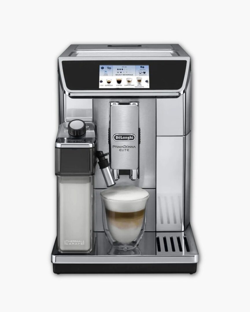 Золотой серединой линейки выступает автоматическая кофемашина DeLonghi PrimaDonna Elite ECAM 650.75.MS. Эта премиальная зерновая кофемашина оснащена ярким 4,3-дюймовым тачскрином и уникальным набором из трех сменных капучинаторов, включая кувшин с магнитным венчиком для горячего шоколада. Вся серия Elite предлагает специальный режим LONG, качественно имитирующий мягкий фильтр-кофе.